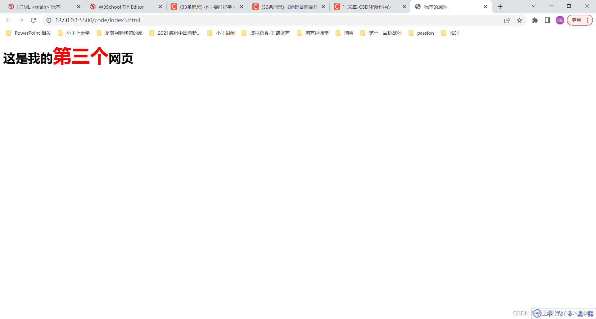 <h1>这是我的<font color="red" size="50">第三个</font>网页</h1>