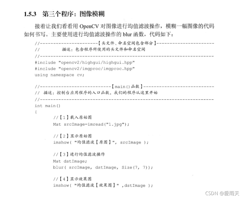 这篇博客展示了如何利用OpenCV库在C++中实现图像的均值滤波。通过`blur`函数,对指定图片进行7x7大小的滤波处理,以平滑图像并消除噪声。程序成功显示了原图和处理后的效果。