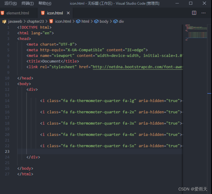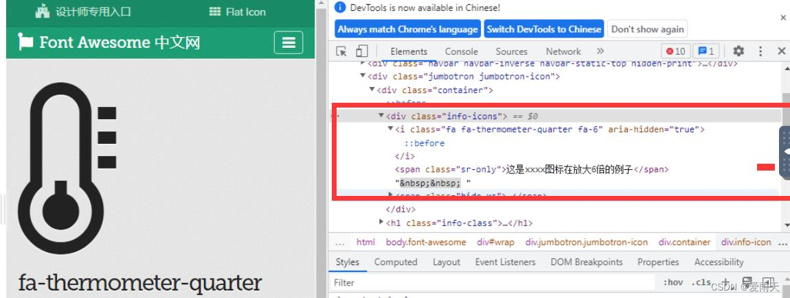 rel="stylesheet" href="http://netdna.bootstrapcdn.com/font-awesome/4.7.0/css/font-awesome.min.css>和把图标代码<i class="fa fa-thermore-quater fa-5x"></i>放进来就行