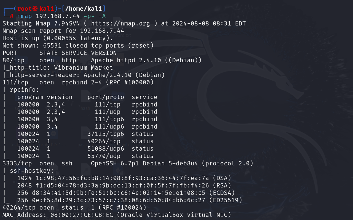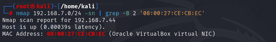 nmap 192.168.7.0/24 -sn | grep -B 2 '08:00:27:CE:CB:EC'