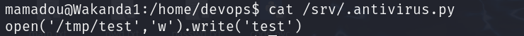 发现 /srv/.antivirus.py 文件会将内容写入到 /tmp/test 中