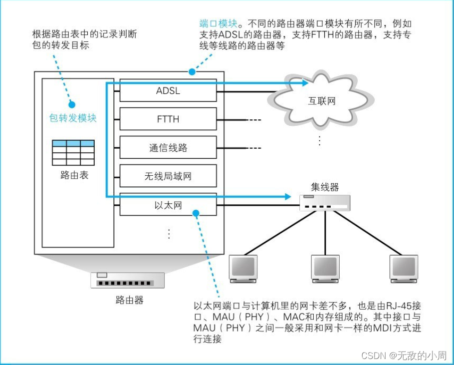 通过更换网卡,计算机可以支持以太网或无线局域网,路由器也一样。如果路由器安装了支持无线局域网的硬件,就可以支持无线局域网了。