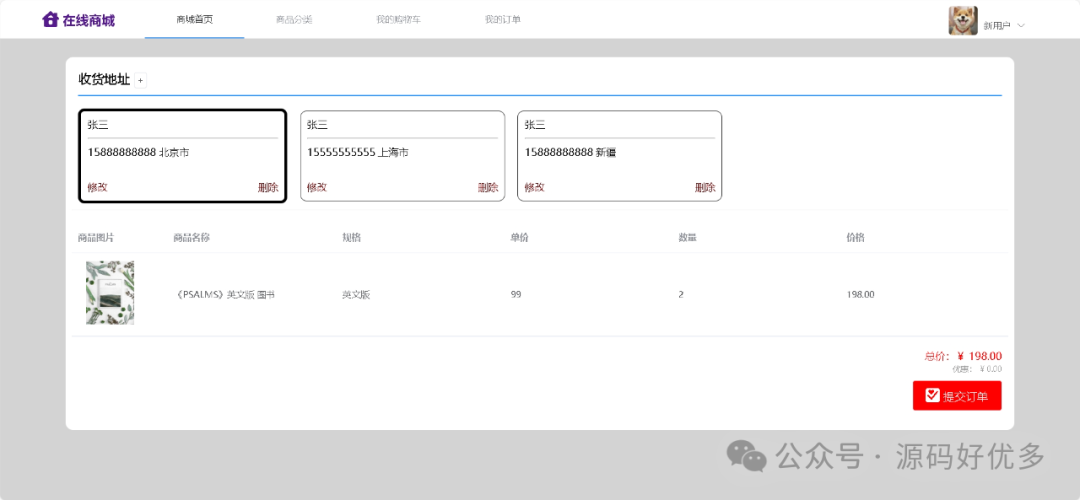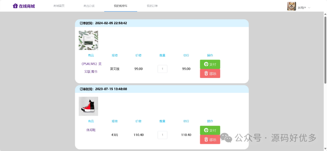 (5)购物车管理模块:实现了添加商品、删除商品、调整数量、结算等功能。