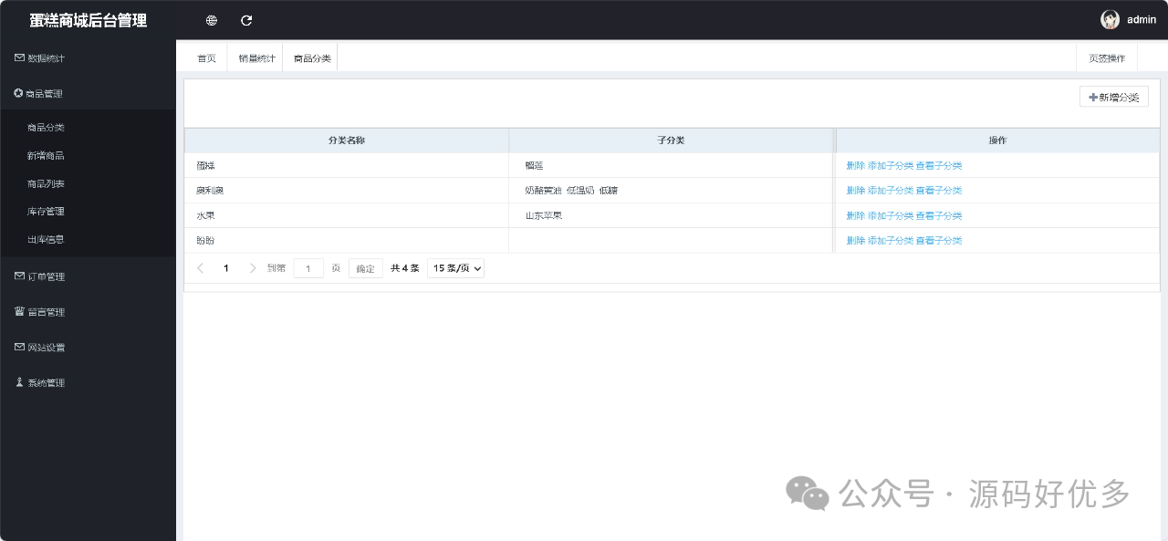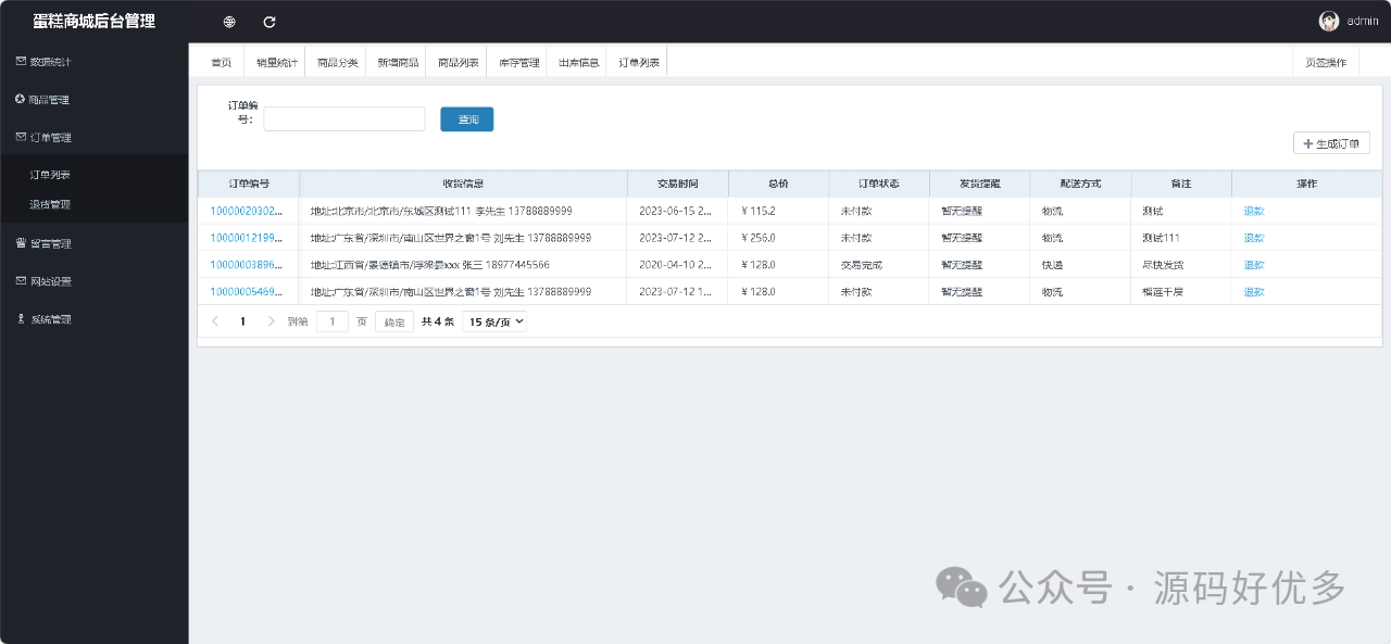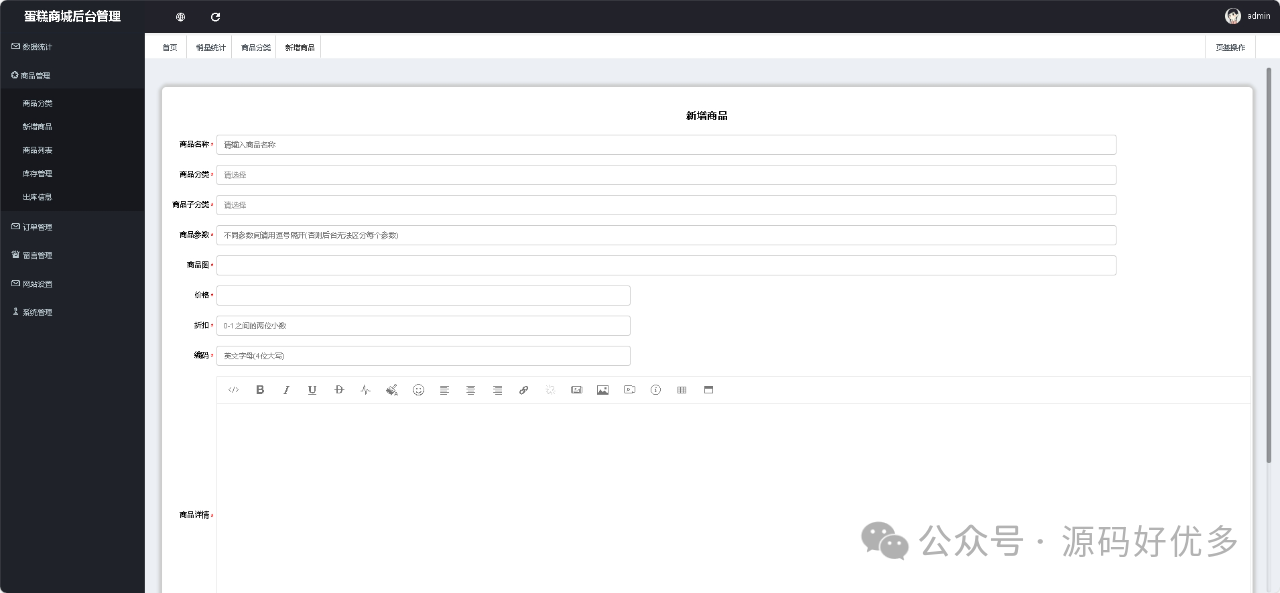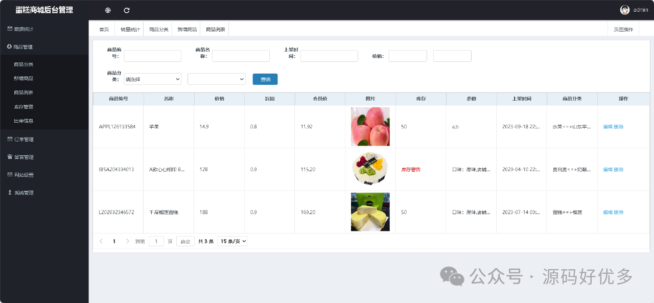 3. 商品管理:含商品列表、新增商品、库存管理、出库信息。