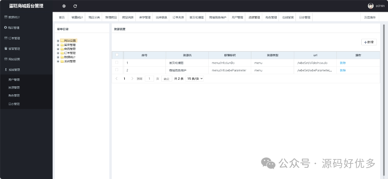 7. 系统设置:包含用户管理、资源管理、用户管理、日志管理。