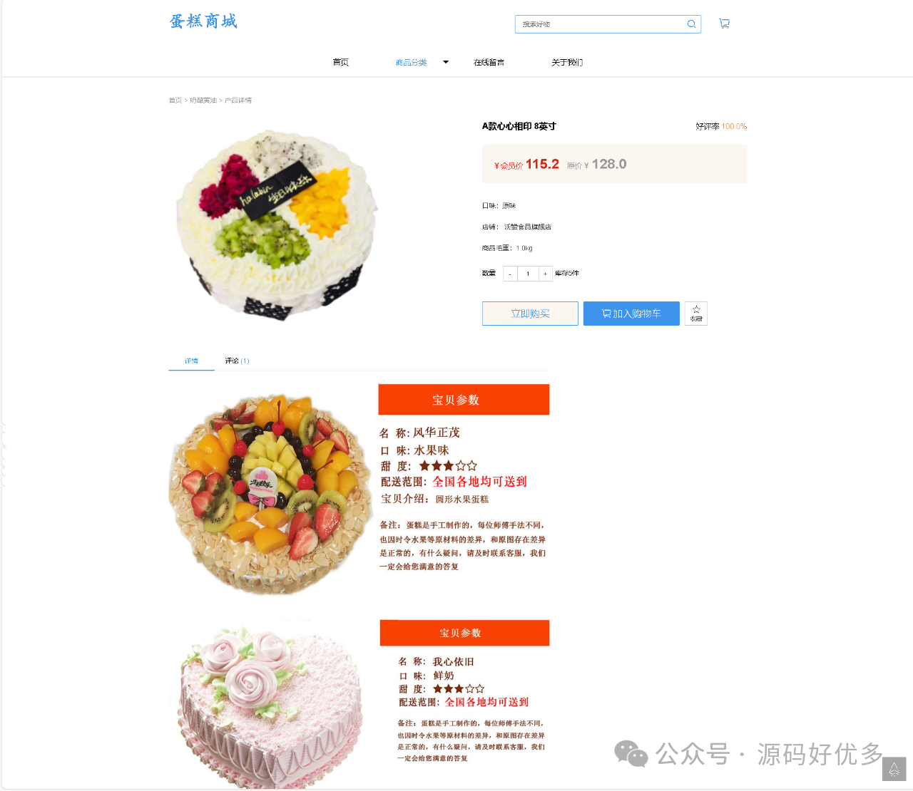 3. 商品详情页:商品详情信息、添加到购物车、立即购买、收藏、评论查看。