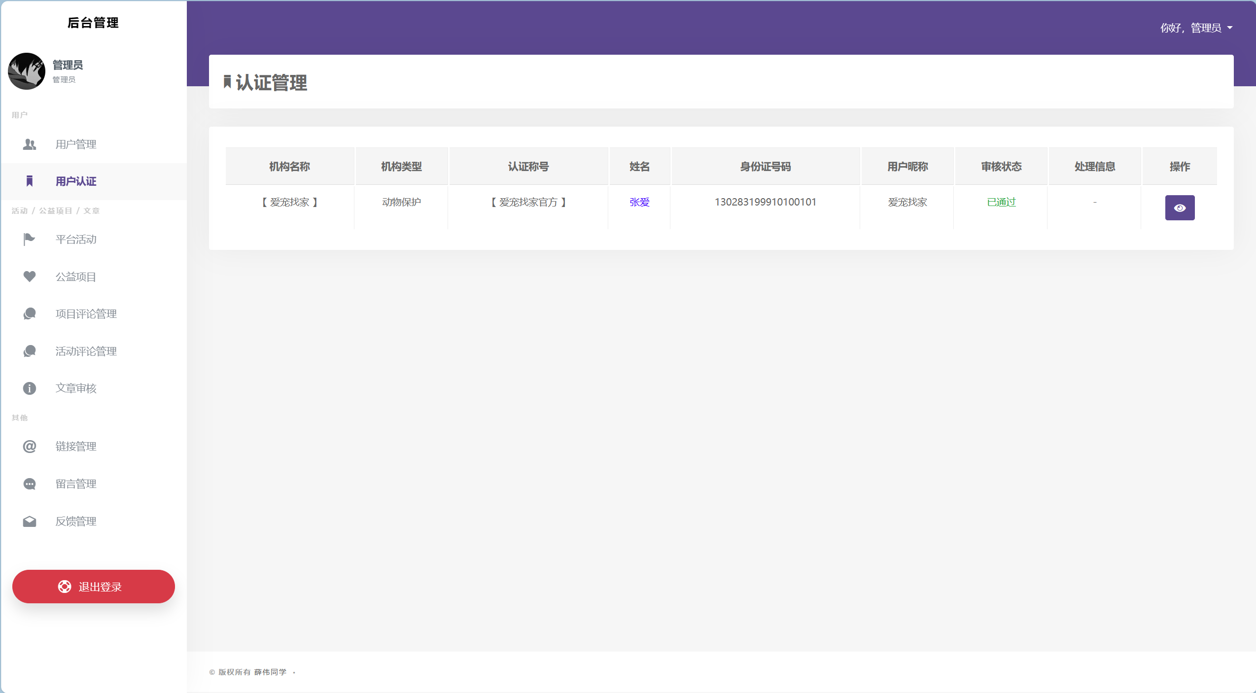 管理员作为平台的运营者,主要负责管理整个平台的运行情况,包括用户信息管理、项目管理等。而捐赠者则是为公益事业做出贡献的人,他们可以浏览平台上的各种公益项目,并选择自己感兴趣的项目进行捐赠。此外,他们还可以在平台上查看自己的捐赠记录和捐赠的项目进展情况。