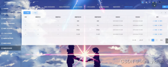 管理员点击跑腿类型表管理,在跑腿类型表管理页面中对跑腿类型id、跑腿类型名称、跑腿类型描述、创建时间、修改时间等信息,进行增加或删除跑腿类型表等操作。如图所示: