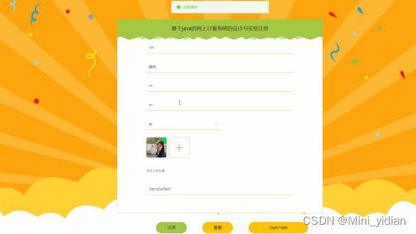 该网上订餐系统采用B/S架构、前后端分离以及B/C模型进行设计,并采用Java语言以及 SpringBoot框架进行开发。本系统主要设计并完成了用户注册、登录,购买美食过程、个人信息修改等,管理员对用户信息、美食分类、美食信息、系统信息、订单信息等功能,进行维护与管理。该系统操作简单,界面设计简单,不仅能基本满足目前网上网上订餐系统的日常管理工作,而且能有效降低人员成本和时间成本,为网上网上订餐系统工作提供方便。
