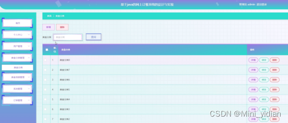 管理员点击美食分类管理,在美食分类管理页面的搜索栏输入美食分类,然后进行查询、新增或删除美食分类等操作。如图所示: