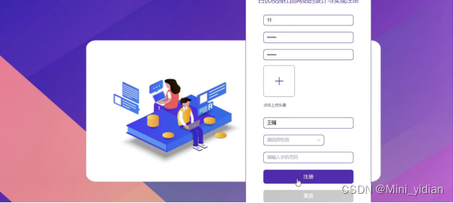 在系统首页点击右侧的注册/登录按钮,然后页面跳转到注册登录界面,后来输入信息完成后,单击注册或者登录操作,如图所示: