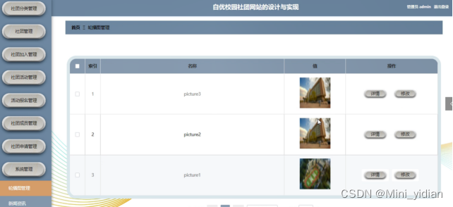 管理员点击系统管理;在系统管理页面对轮播图管理、新闻资讯等信息,进行查询或删除系统信息等操作;如图所示。