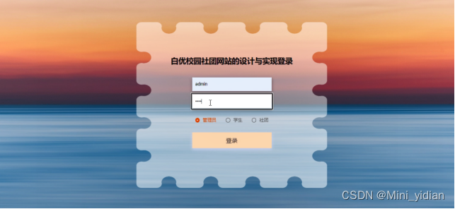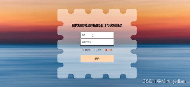 社团登录,通过登录页面填写信息完成后,点击登录操作,如图所示。