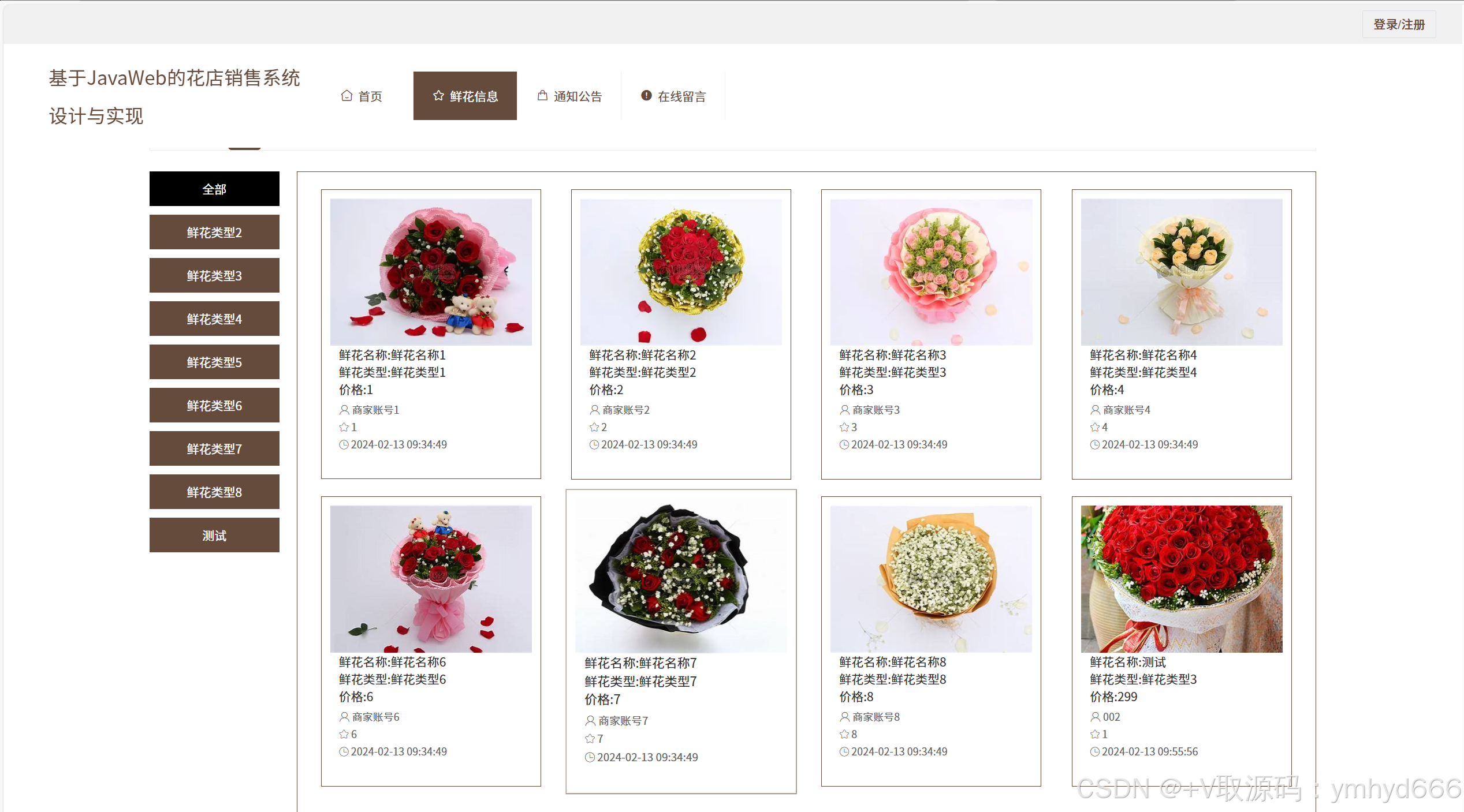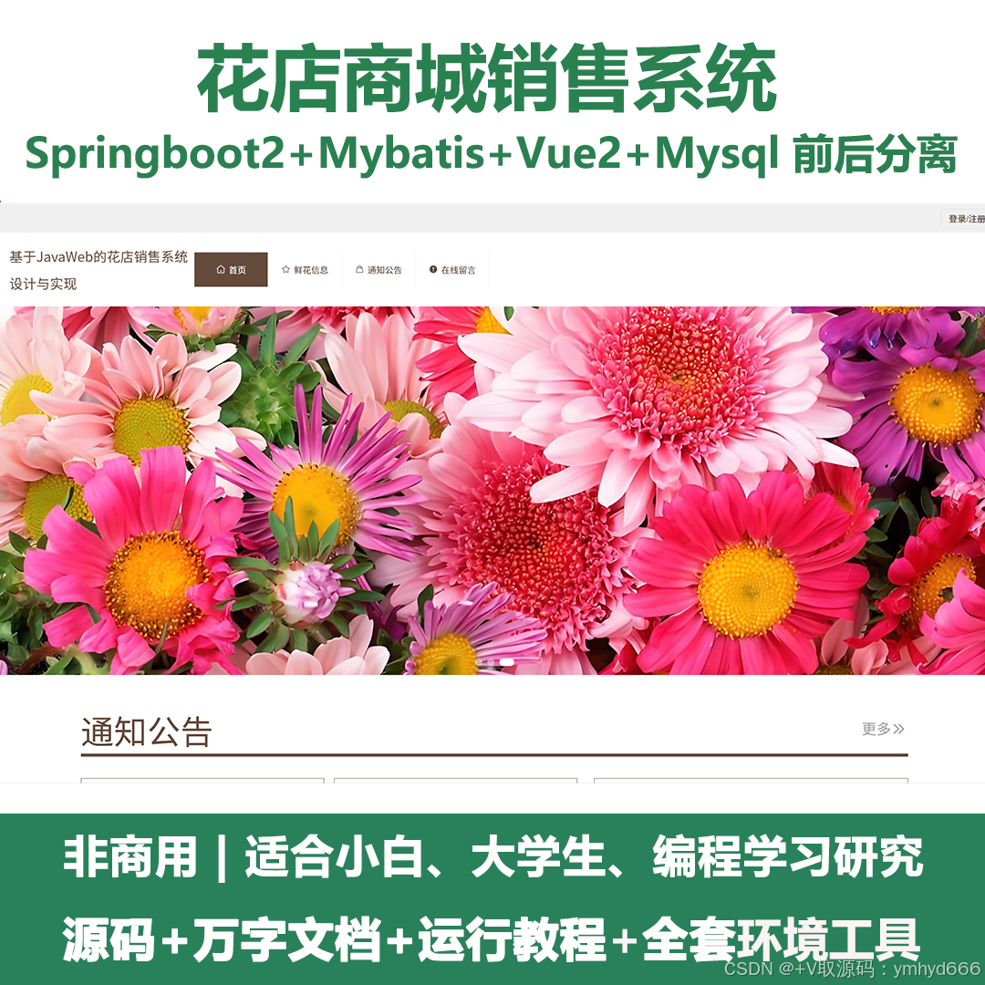 本项目(编号:springbootA406)为基于SpringBoot的花卉商城管理系统,实现了鲜花在线展示、收藏、购买、支付及订单管理等功能。系统采用Springboot+Vue框架,管理员可进行花卉分类、商品、订单与用户管理,为用户提供便捷的鲜花选购与订单处理体验,有效提升花店运营效率与管理规范性。