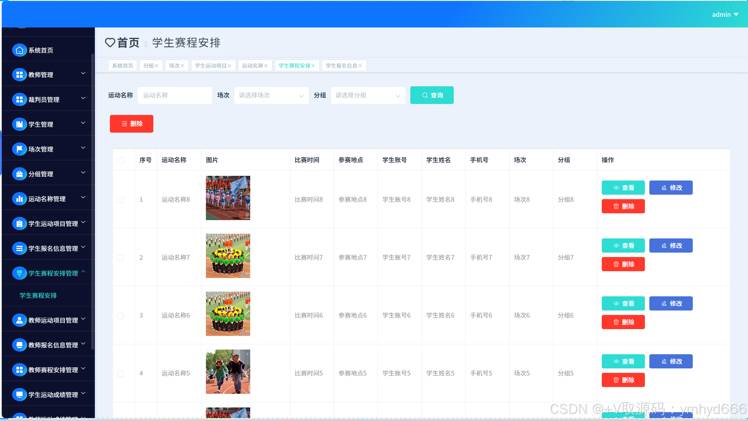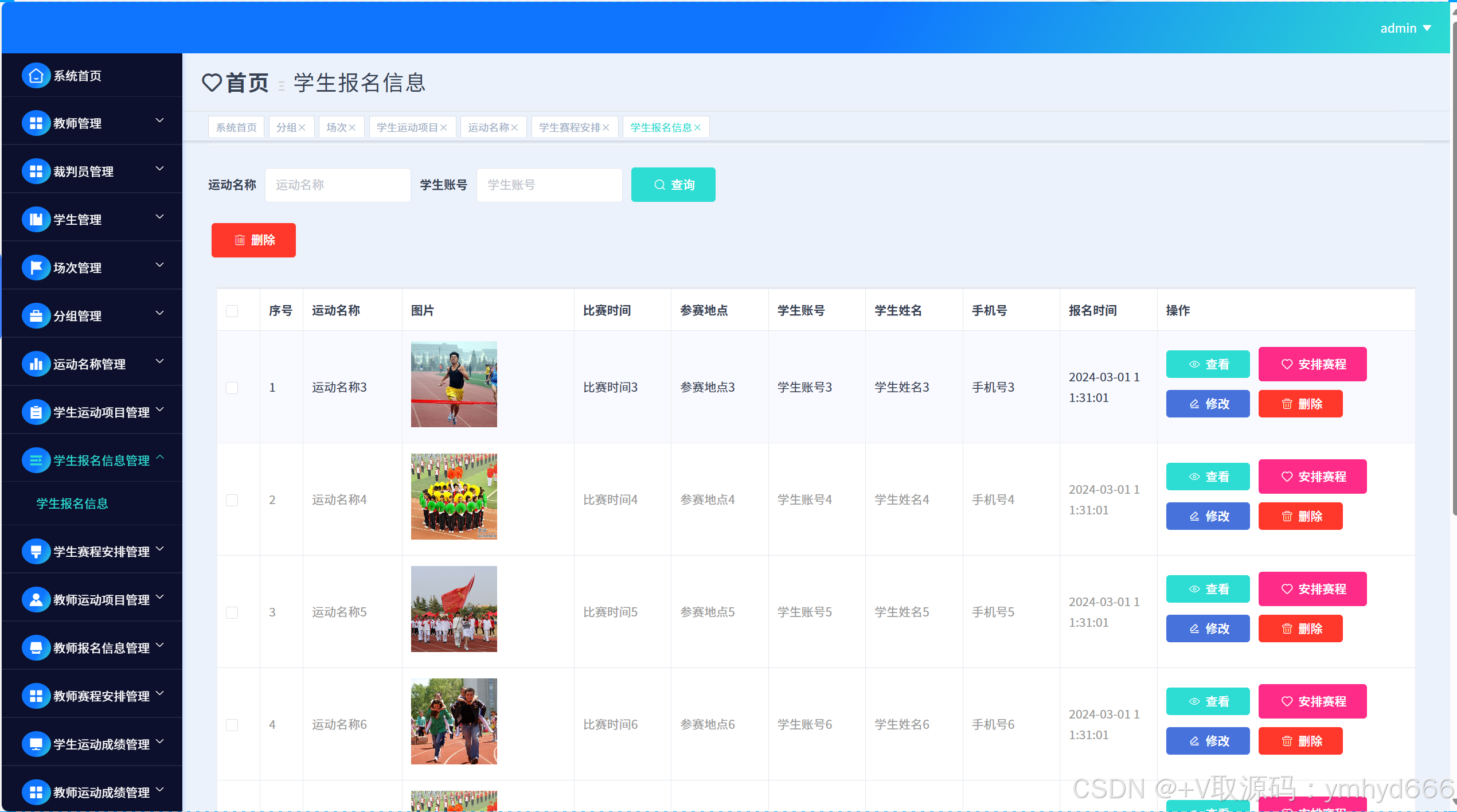 高校运动会管理系统、大学生体育赛事平台、运动会信息化系统