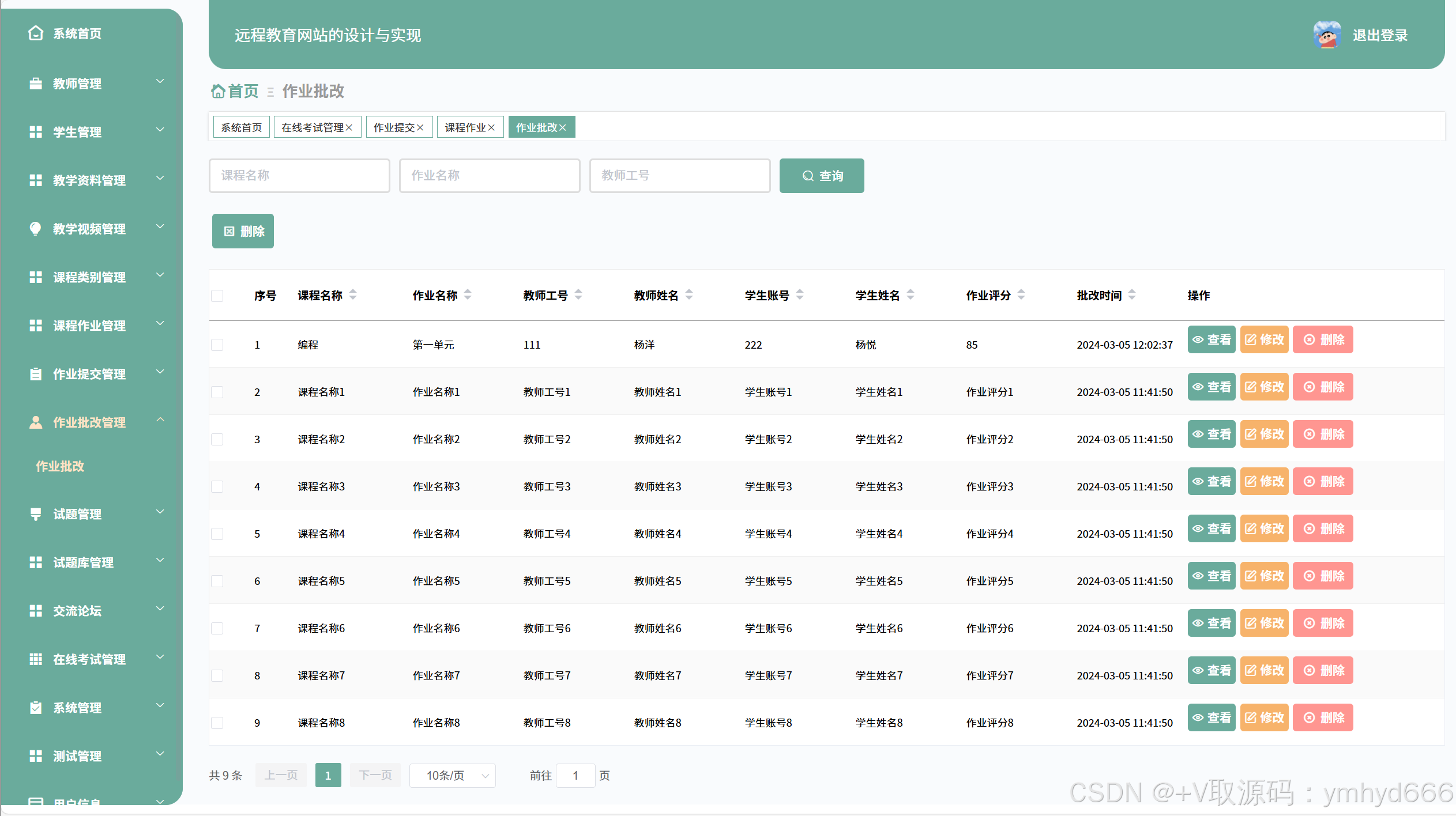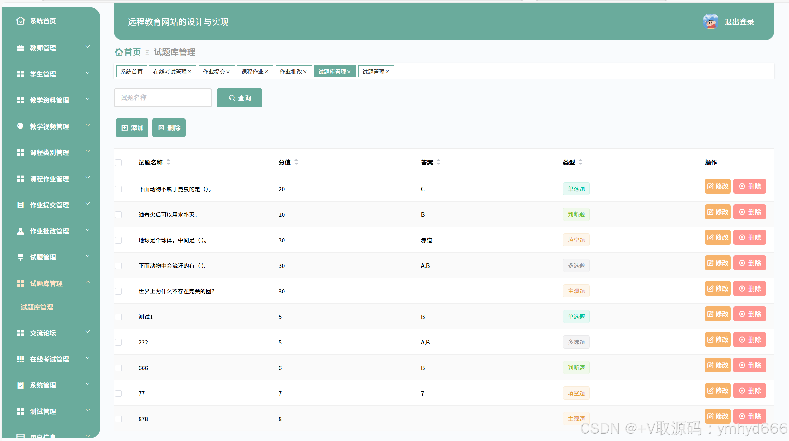 本项目(编号:springbootA418)为基于SpringBoot的在线教育平台,支持学生、教师及管理员三类用户角色。系统提供课程学习、在线考试、试题管理、成绩记录及公告发布等核心功能,通过规范化的数据管理与业务流程,构建完整的线上教学环境,有效提升远程教育的教学质量与管理效率。