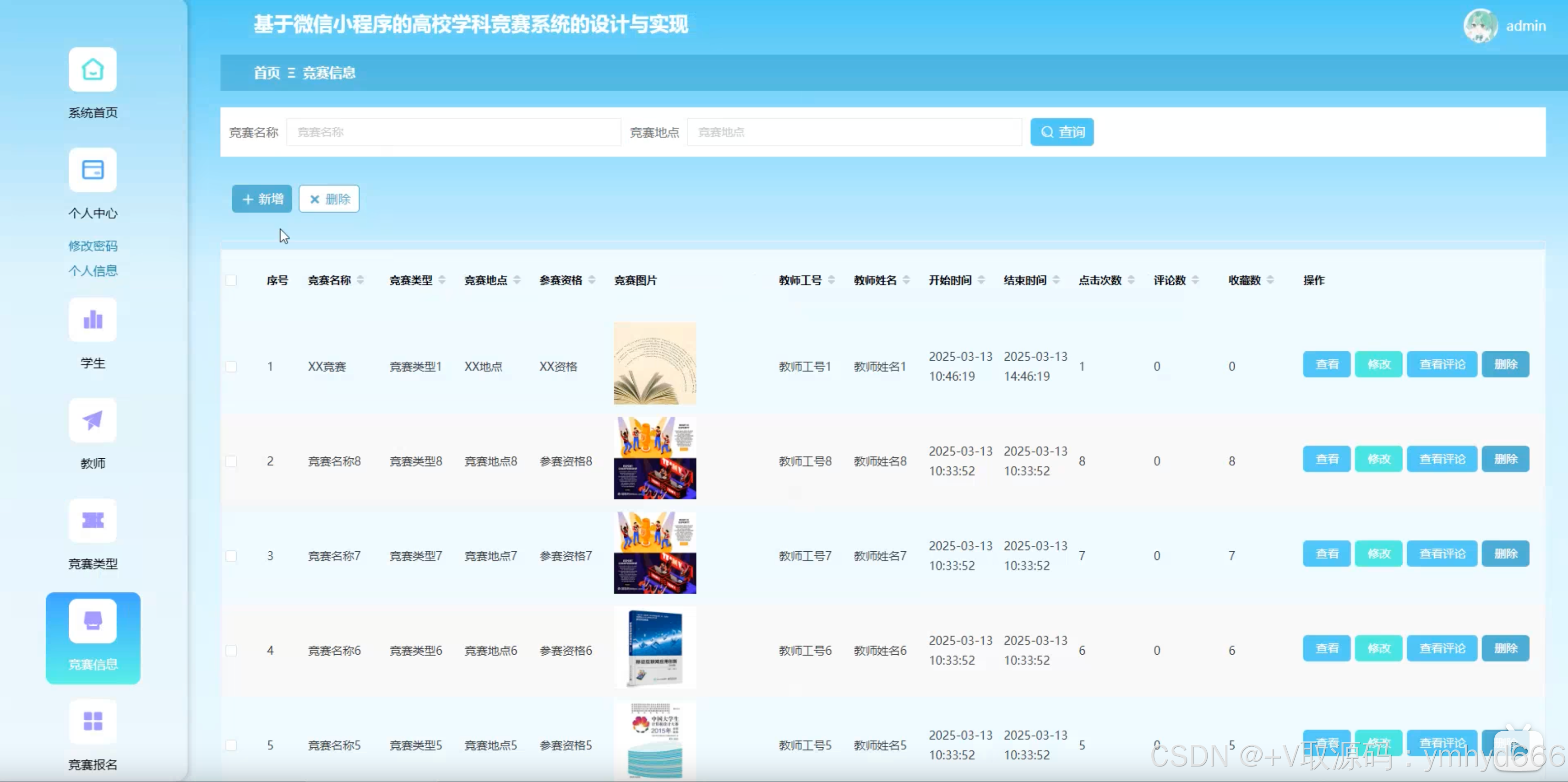 基于微信小程序的高校学科竞赛系统,为学生、教师提供便捷的竞赛信息发布、报名、作品提交、评审等功能,提升高校学科竞赛管理效率。