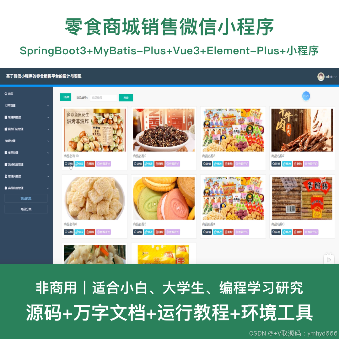 基于微信小程序的零食商城销售系统,方便用户随时随地浏览选购各类零食商品,提升商家运营管理效率。