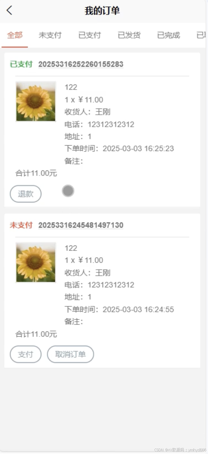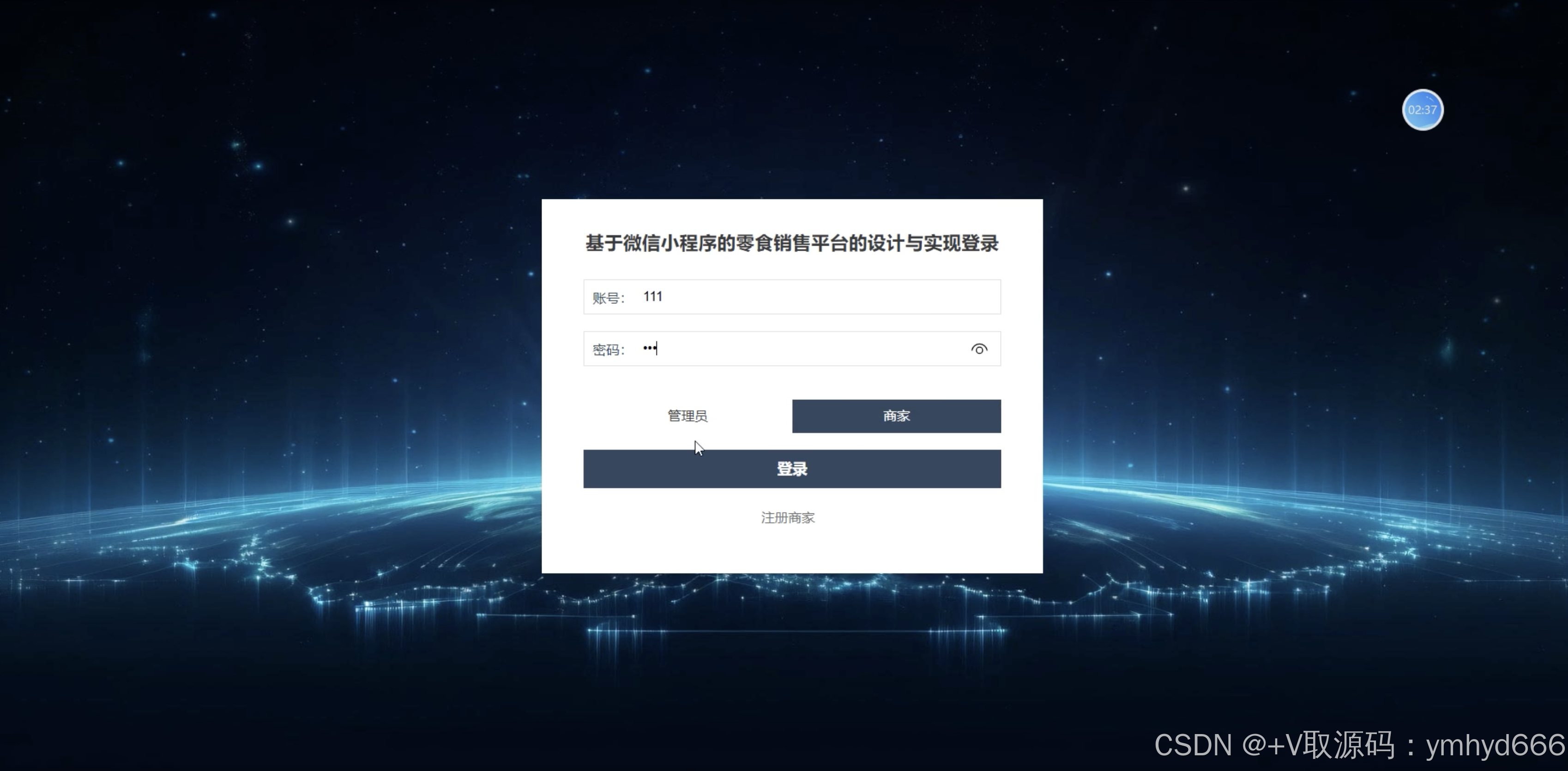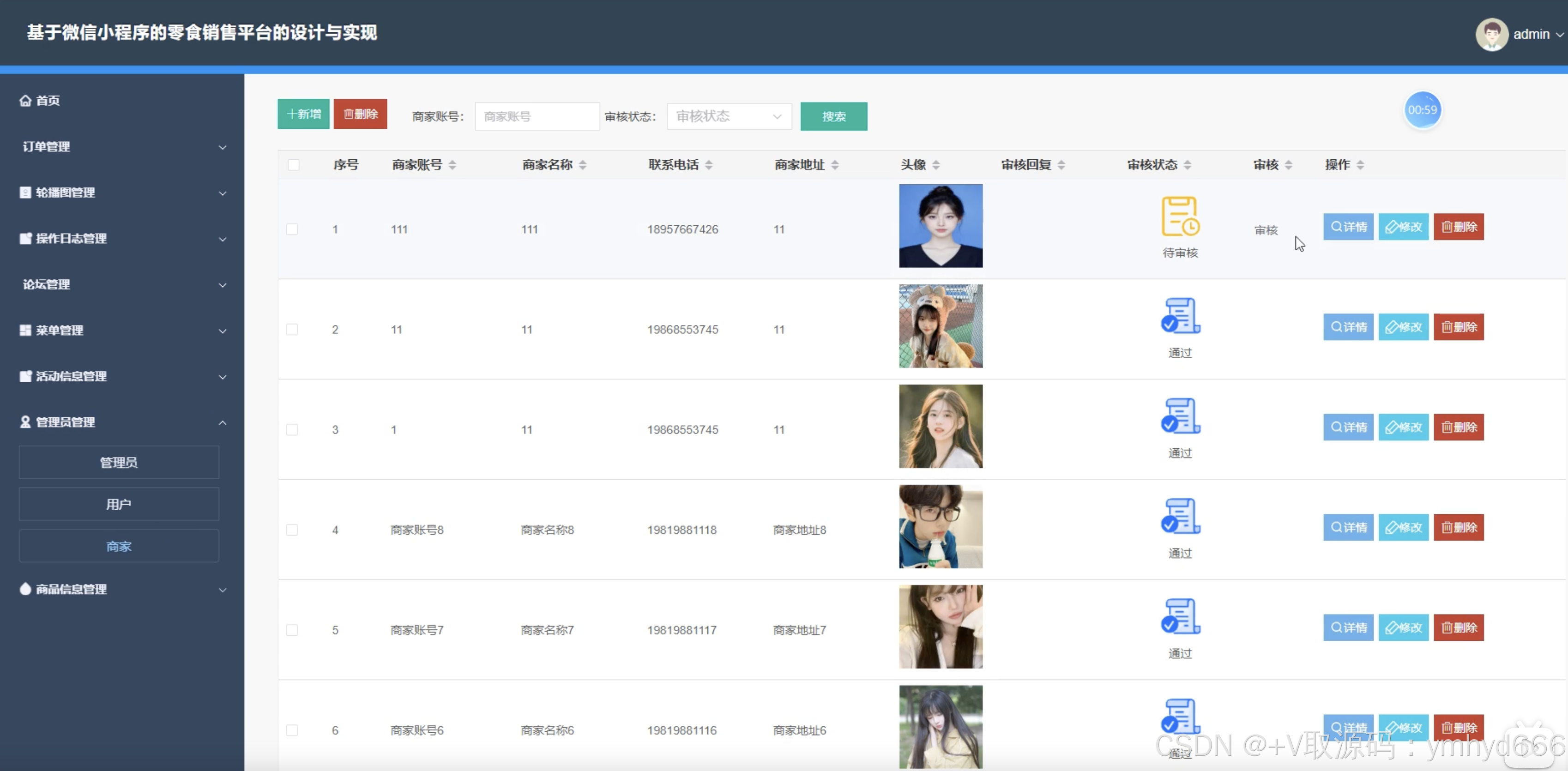 角色:管理员、用户、商家