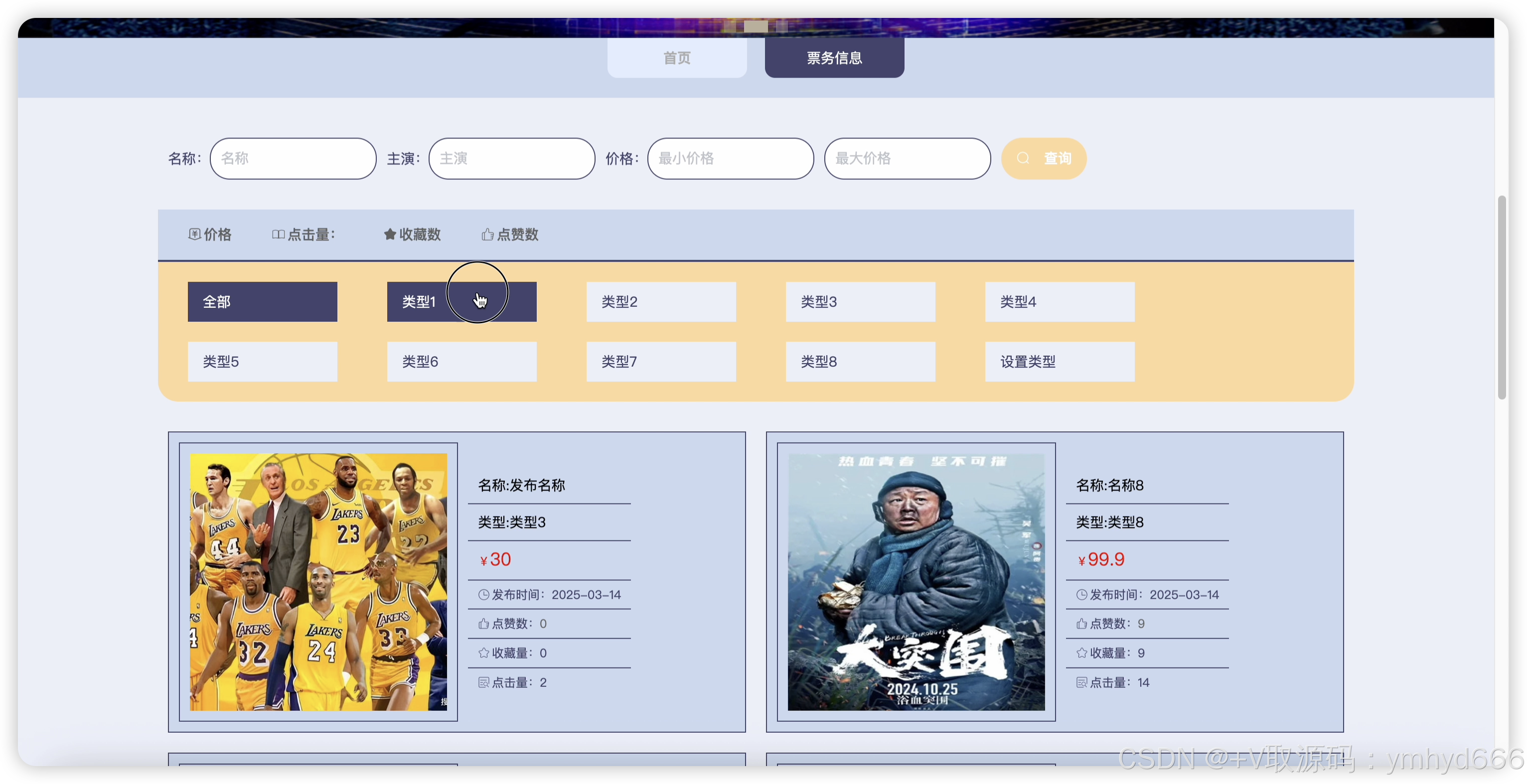 基于SpringBoot+Vue的购票票务管理系统,方便用户在线浏览和购买各类演出票务,提升票务管理效率和用户购票体验。