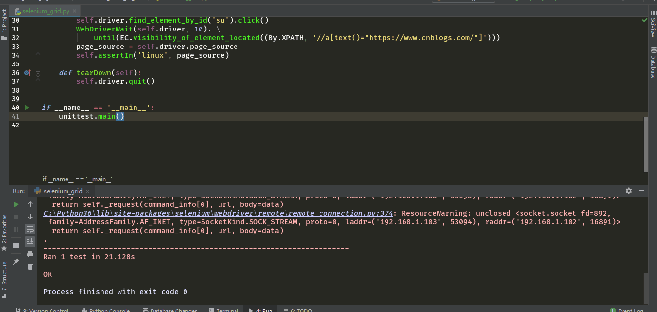 到这里,我们的分布式自动化测试环境就配置完成了,接下来开始编写我们的测试代码,看下是否能够在远程note机器上执行测试