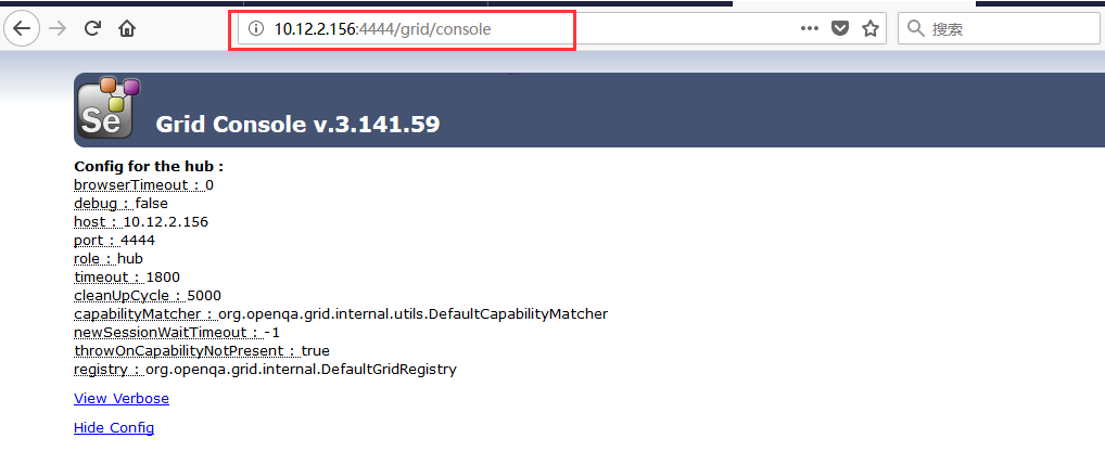 初始化完成后,我们可以访问http://192.168.24.1:4444:/grid/console来查看初始化的hub状态如图