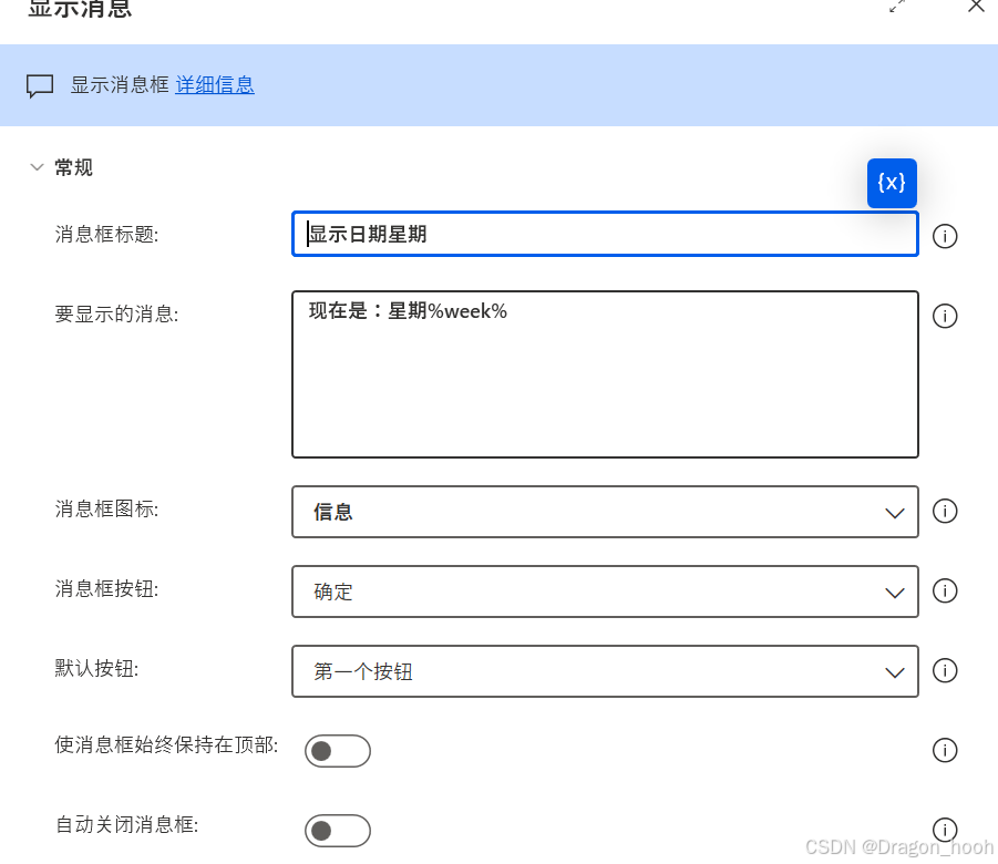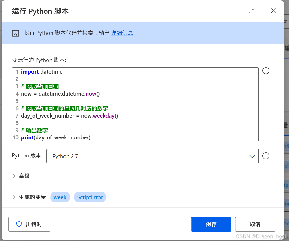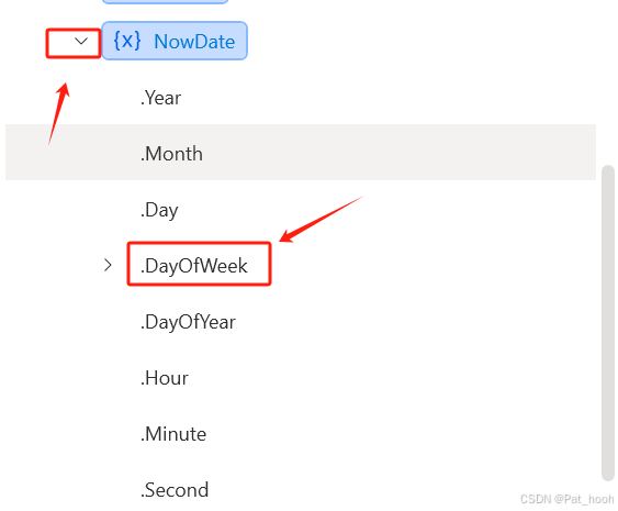 25/03/19 更新:破案了,在变量的这个位置可以选择日期变量是星期几的。只是通过这个形式显示出来的是周几的英文,本篇文章调用脚本返回的是数字仍有参考价值哈哈。