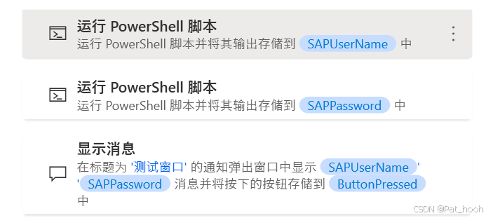 2.Power automate的这个调用只能输出一个变量,所以要把输出用户名跟输出密码拆开。