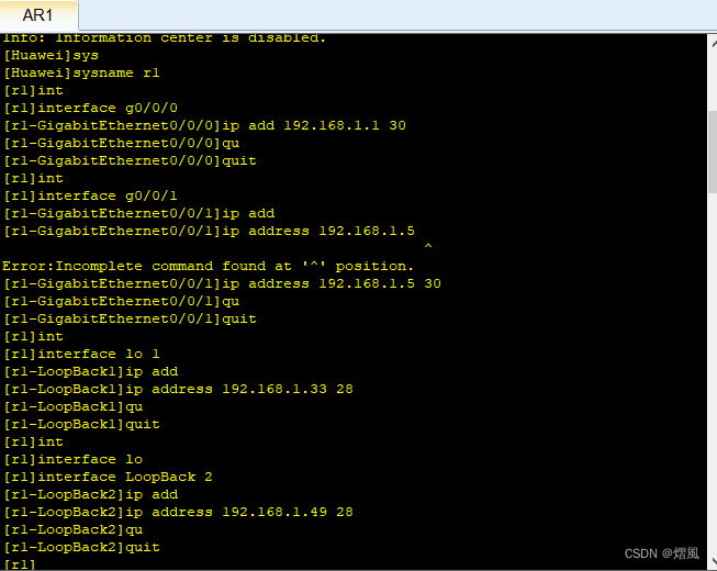 [r1-GigabitEthernet0/0/1]ip address 192.168.1.5 30