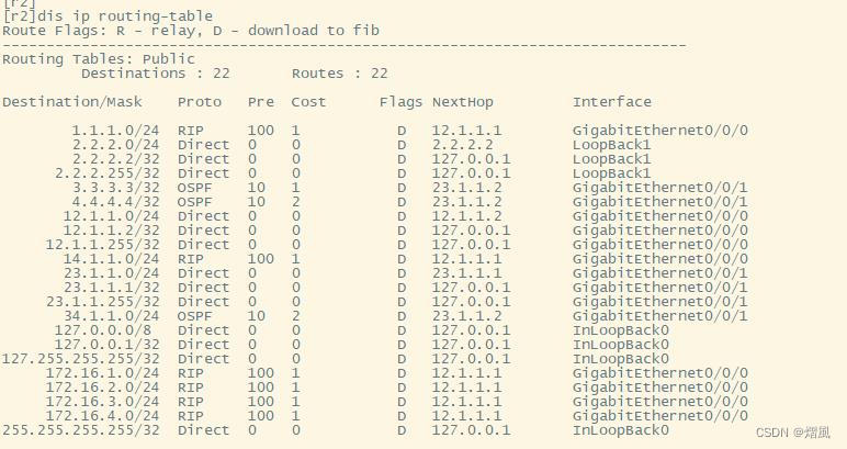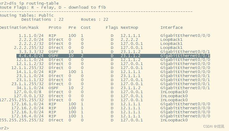 ospf协议传递本地环回接口网段时,为32位主机路由;但若将本地环回通过重发布导入其他路由时,基于本地路由表中的直连路由进行;若本地直连路由为其他长度掩码,将使得该网络出现两条掩码不同的路由来在整个网路传递;