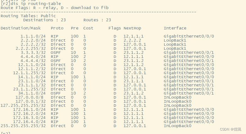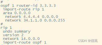 [r2-rip-1]import-route ospf 1 cost 2 默认导入的路由其种子度量为1,人为可以添加数值;此处添加2,最终为3;