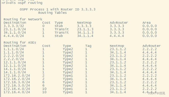 类型1 在路由表中显示整段路径的总度量;