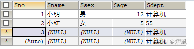 学号,姓名,性别,年龄,所在系Sno为主键课程表: