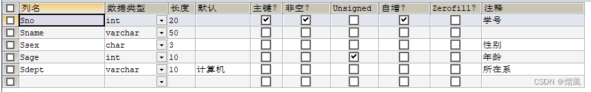 学生表:Student(Sno,Sname,Ssex,Sage, Sdept)