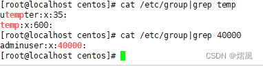 (2)擦行间GID为600的temp组及组id为40000的adminuser组