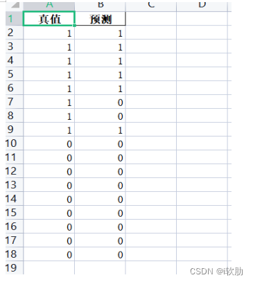 result = pd.DataFrame(np.hstack((y,y_pred)),columns=['真值','预测'] )