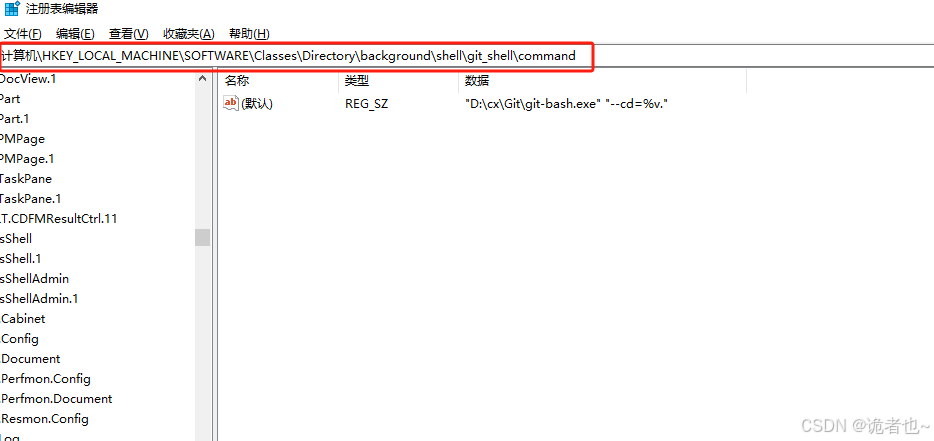 计算机\HKEY_LOCAL_MACHINE\SOFTWARE\Classes\Directory\background\shell\git_shell\command