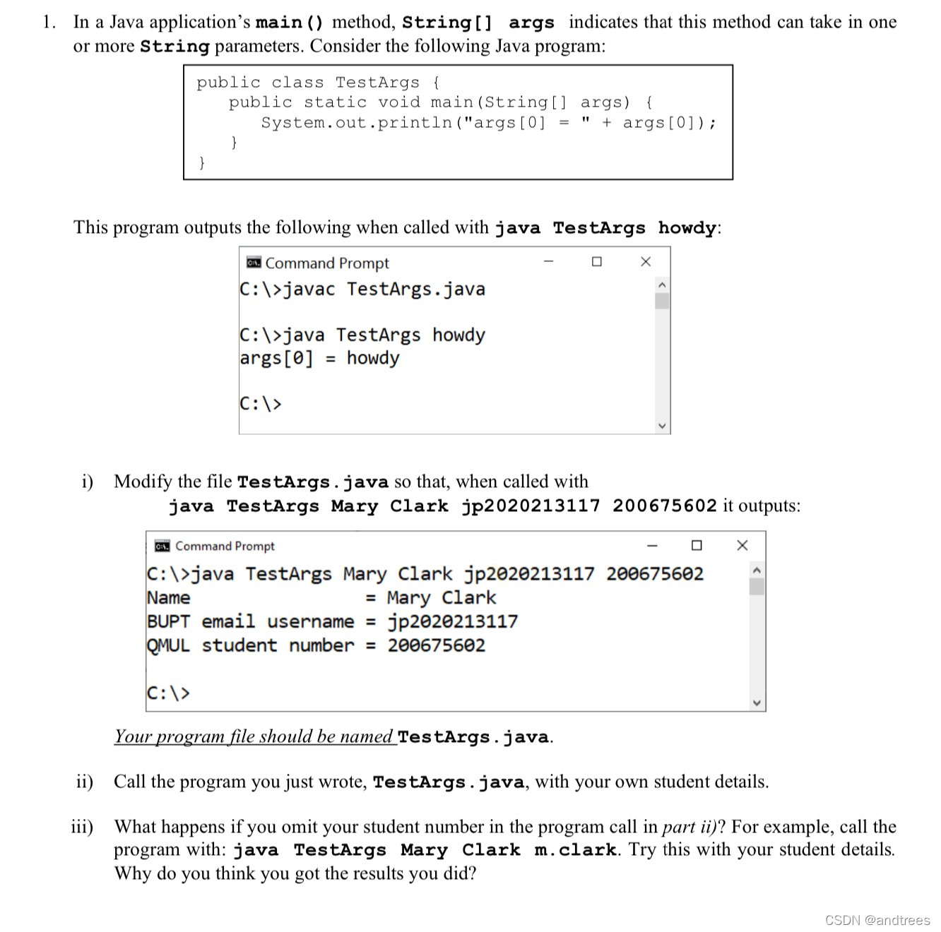 本文介绍了一个Java程序中处理数组越界异常的例子。通过一个简单的TestArgs类,演示了当传递给main方法的参数数量不足时如何抛出ArrayIndexOutOfBoundsException异常。