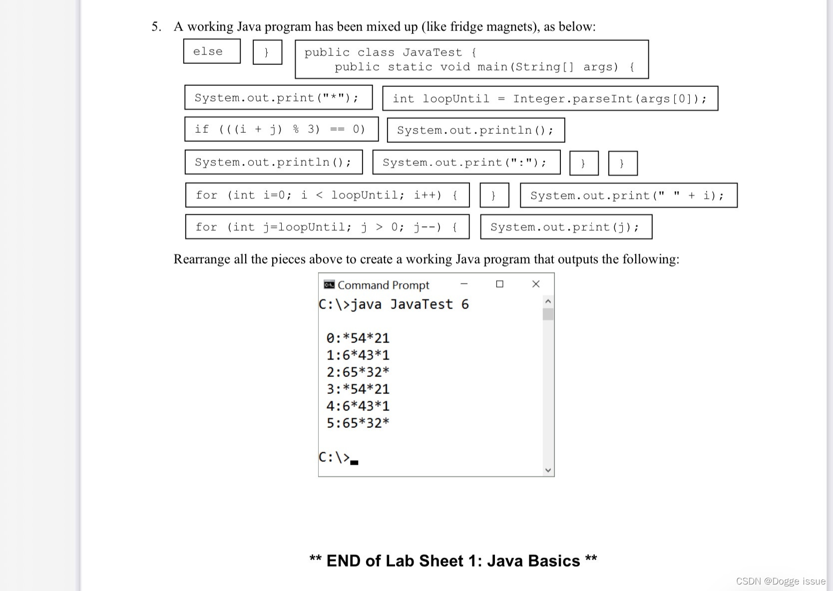 本文介绍了一个Java程序的重构过程,通过调整程序语句顺序来实现特定的运行结果。该Java程序接受一个参数作为循环上限,并打印一系列基于条件判断的字符序列。