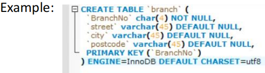 CREAT TABLE 名字(属性名 数据类型[默认值]约束,……)
