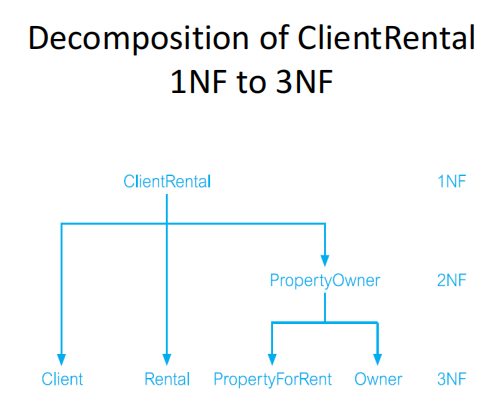 - Rental(clientNo, propertyNo, rentStart, rentFinish)