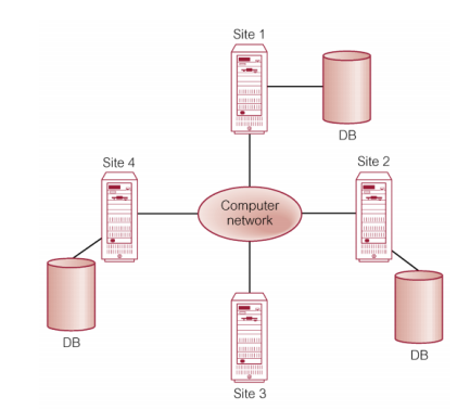 每部分包括完整的数据库情况(完整副本)。Consists of maintaining complete copy of database at each site.