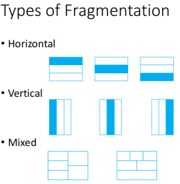 数据库分成块 块与块之间不重叠 每块放一个地方。Database partitioned into disjoint fragments, each fragment assigned to one site