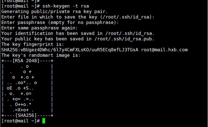 ssh-keygen命令执行完毕,会在/root/.ssh下生成一对密钥,其中id_rsa为私钥,id_rsa.pub为公钥,公钥需要下发到远程主机用户的.ssh目录.