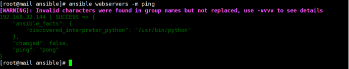 由输出结果可知,主机192.168.32.144连通,ansible正常工作.
