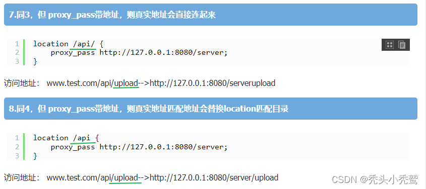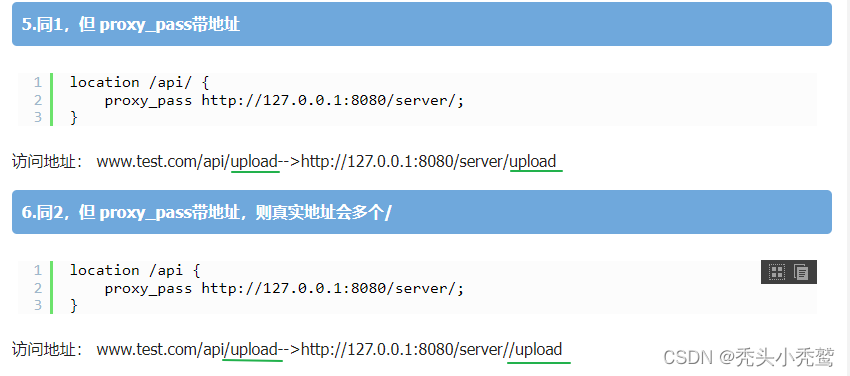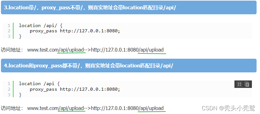 二、proxy_pass后面除了端口位置外,再接其他资源。(也就是无论如何也就是把location后面接的url去掉之后剩下的再拼接上去。)