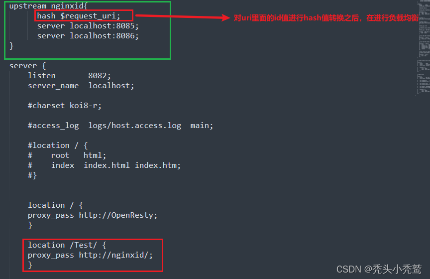 nginx会把占位符里面的数据,进行hash换算,换算之后就会在下一次进行访问的时候根据hash值来访问对应的端口,也就是假设占位符里面的数据是101 ,此时换算的hash指向的ip地址是8085,下一次访问的时候也会在8085那里访问!