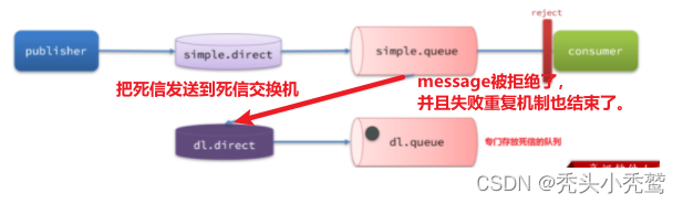但是如果是一个队列添加死信机制的话(simple.queue添加dl.direct)的话,不是基于binding的。而是在创建队列的时候进行配置(也就是类似做持久化的操作)