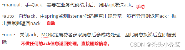 对于如何发送ack,springamqp对于消费者的配置有三种方式去进行: