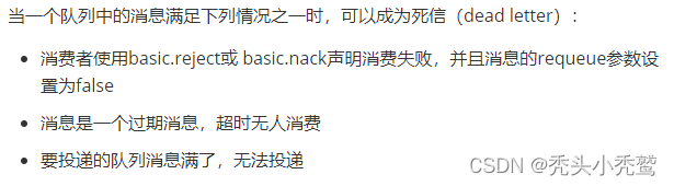 我们知道死信除了失败重试机制结束后还没有发送的消息,还有一种就是在队列里面的超时没有消费的消息!